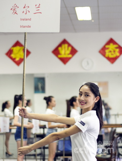 College girls selected as the guides at the opening ceremony of YOG (Youth Olympic Games) receive training in Nanjing. They became the beautiful landscape during the event. (Photo/CNTV)
