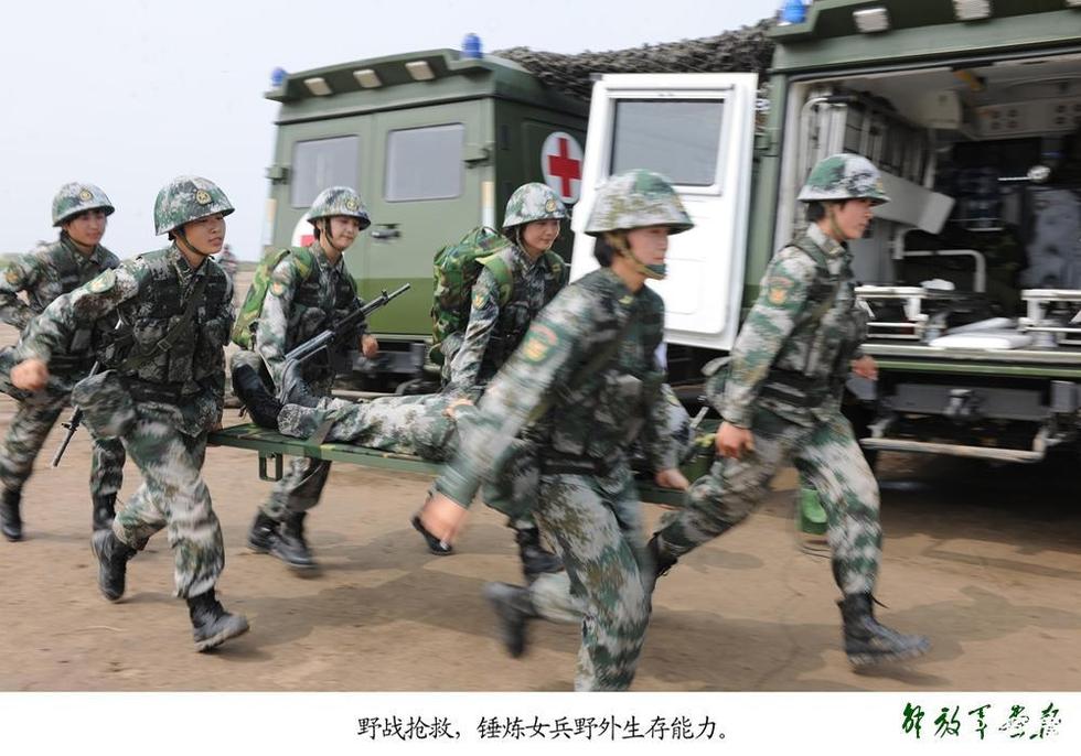 The female soldiers in the battlefield rescue exercise (Photo/PLAPIC.com.cn)