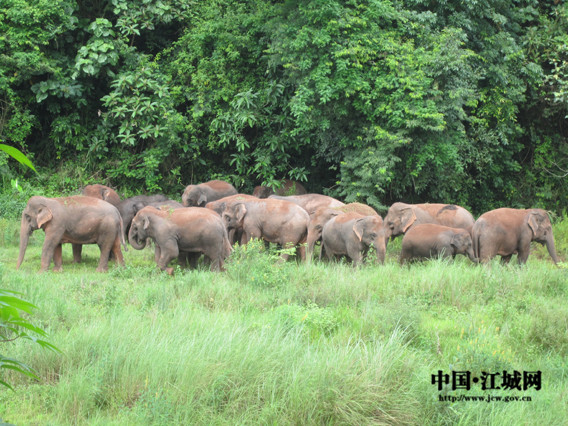 Wild Asian elephants play in the Manlao River of Jiangcheng County (gcw.gov.cn)
