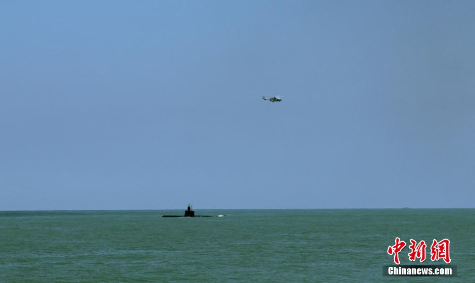 Submarine and helicopter cooperate to hit targets. (Photo/CNS)