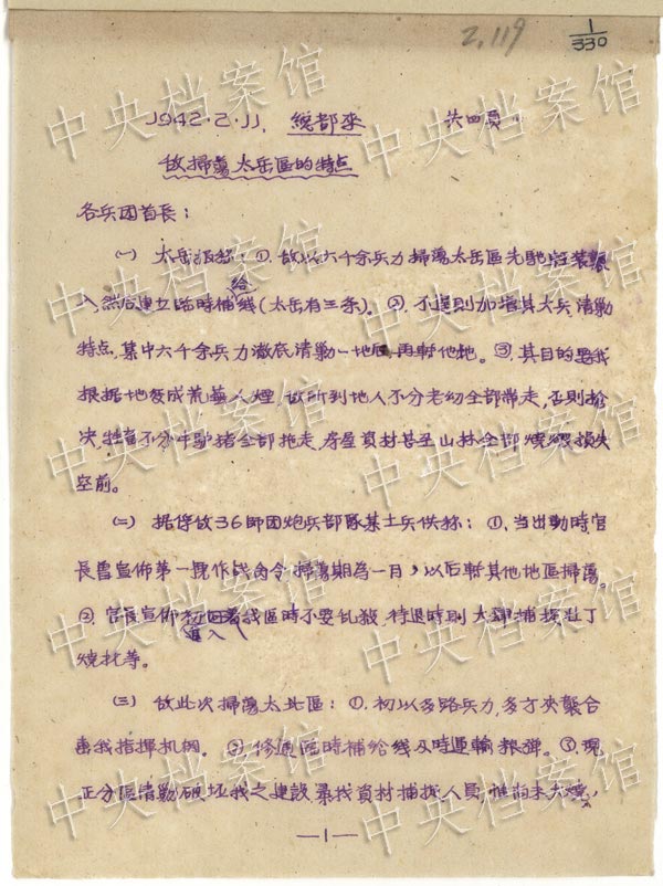 The headquarters of the Eighth Route Army gave the order to fight against the mop-up operations on February 11, 1942. (Photo/China's State Archives Administration)