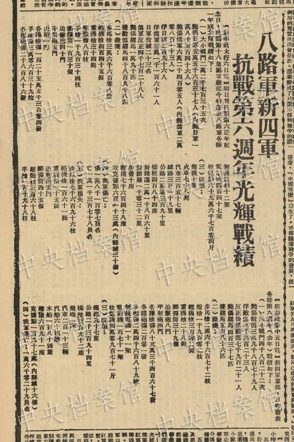 The headquarters of Eighteenth Army Group and the New Fourth Army published the military feats of the Eighth Route Army and the New Fourth Army on the sixth anniversary of China’s resistance against Japanese aggression on July 6, 1943.
