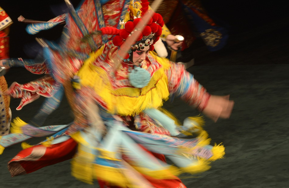 | Actress Li Hongyan performs Beijing Opera "Resisting Jin Troops" during a preview for media at Lincoln Center in New York City. (Xinhua/Wang Lei) |