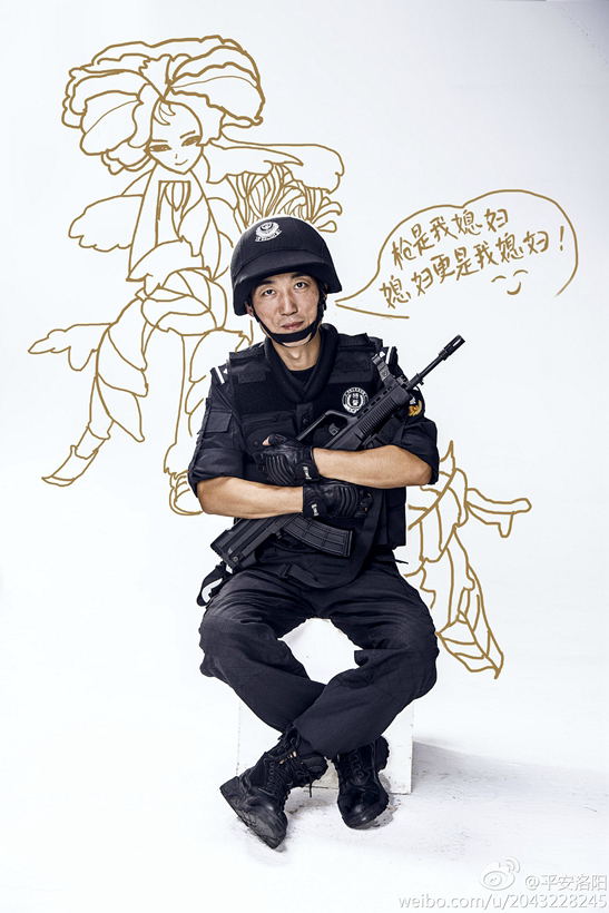 The cute SWAT police officer in the public security bureau of Luoyang. ( Photo/Weibo)
