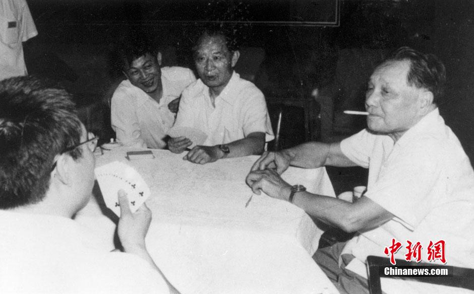 Deng Xiaoping and Hu Yaobang take part in a bridge tournament in 1984. (Photo/China News Service)