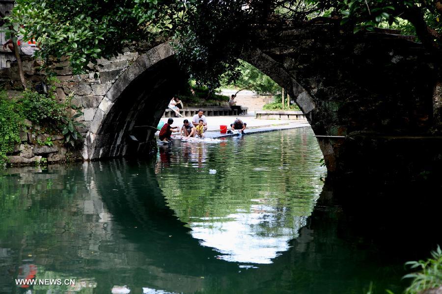Tourists go sightseeing at the Ling Qu Canal in Xing'an county, southwest China's Guangxi Zhuang Autonomous Region, Aug. 23, 2014. Built in the Year 214 BC, the Ling Qu Canal is one of the oldest canals in the world which links the Xiangjiang River and Guijiang River to form a north south waterway of the region. (Xinhua/Wang Zichuang)