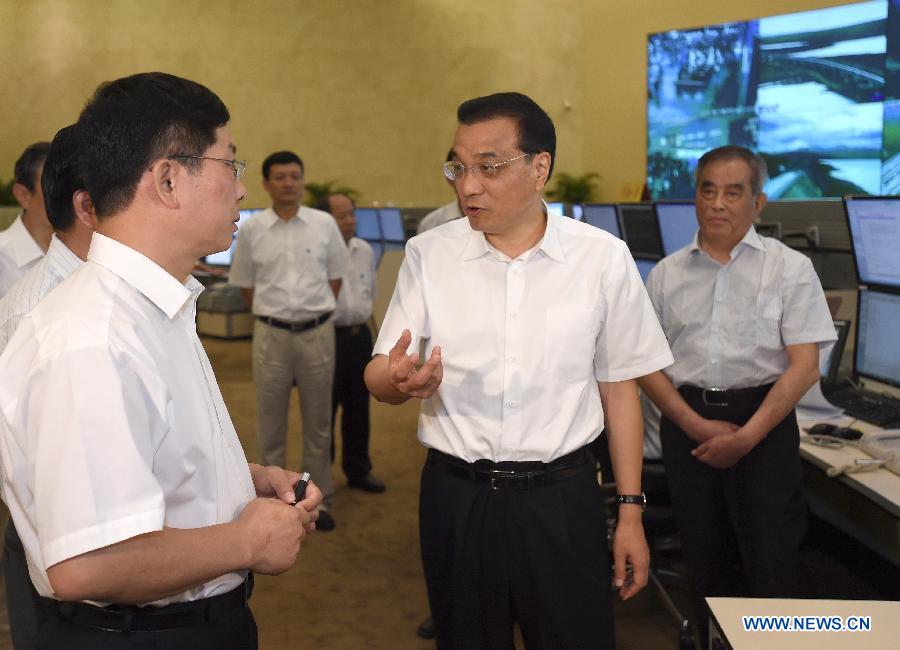 | Chinese Premier Li Keqiang (C) talks with staff members at the railway transport command center of the China Railway Corporation (CRC) in Beijing, capital of China, Aug. 22, 2014. Li Keqiang made an inspection tour to the CRC and hosted a symposium at the company on Aug. 22. (Xinhua/Ma Zhancheng) |