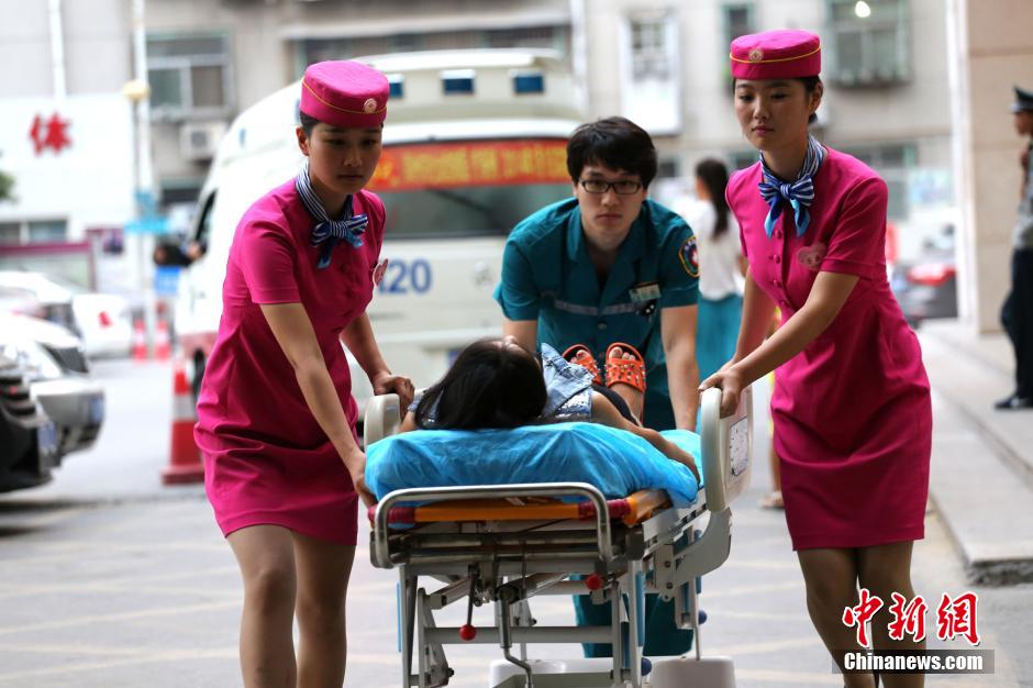 Nurses dressed in stewardess costumes serve the patients in Zhengzhou First People's Hospital, Aug. 24, 2014. (Chinanews/Yang Zhenghua)