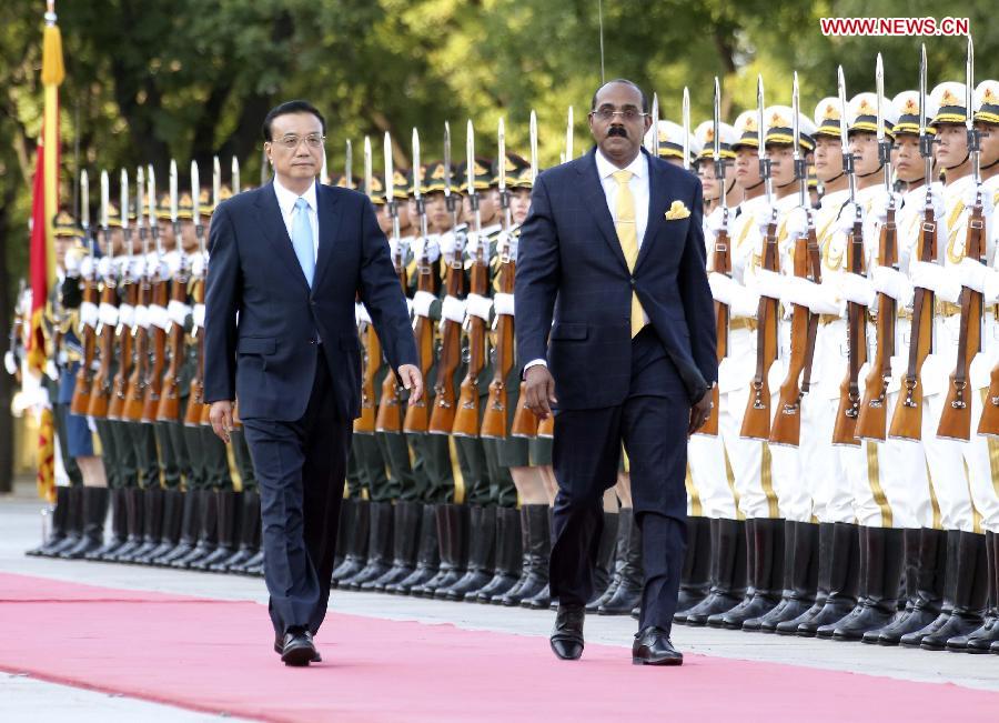 Chinese premier holds welcome ceremony for Antigua and Barbuda prime minister (2)
