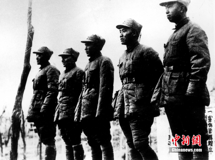 Leaders of the 129th division of Eighth Route Army: Liu Bocheng, Deng Xiaoping, Cai Shufan, Li Da and Wang Shusheng (from left to right). (Photo/CNS)