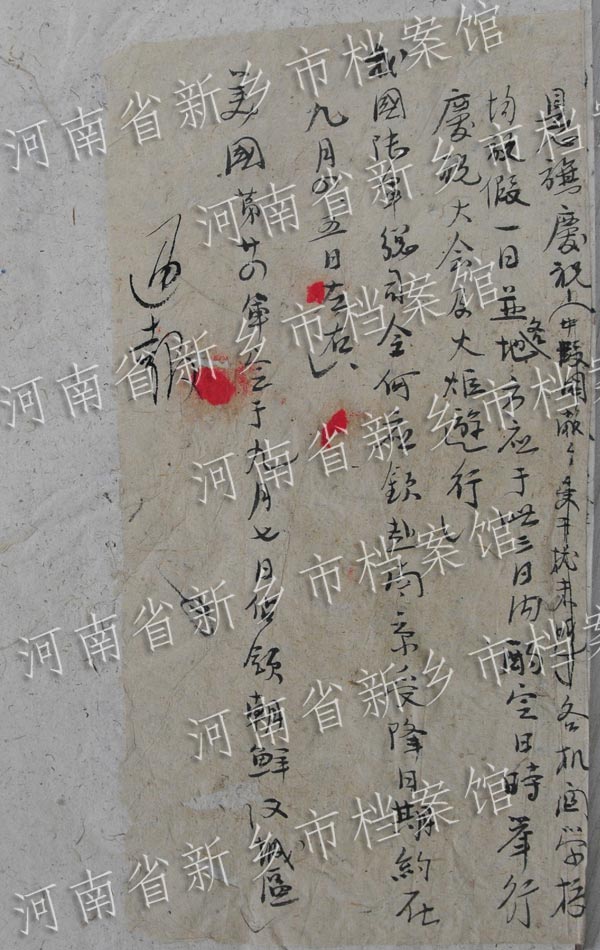 On September 2, the government of Xinxiang, central China’s Henan Province gave a notice on the ceremony and torchlight parade. (Photo/ Xinxiang Municipal Archives)