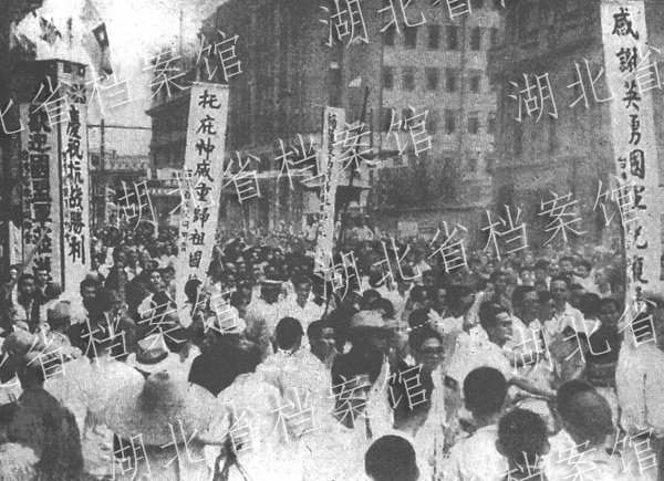 Crowds in Hankou, central China’s Hubei Province, celebrate V-J Day. (Photo/ Hubei Provincial Archives)