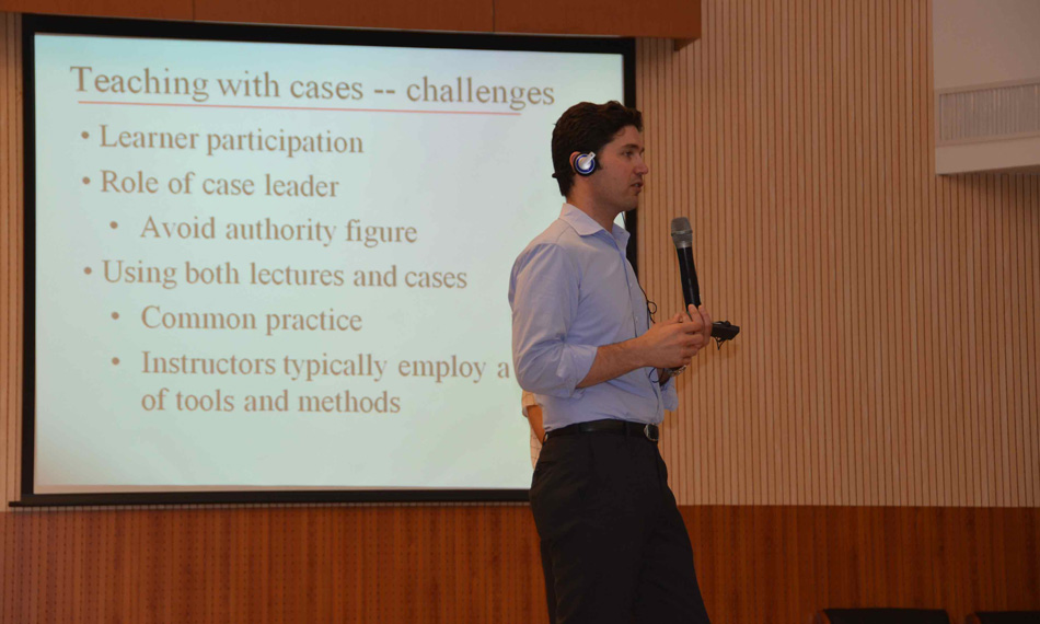 | Christopher Marquis, associate professor of Harvard Business School, shares case method teaching with teachers at the symposium on Aug. 23, 2014. (People's Daily Online/Du Mingming) |
