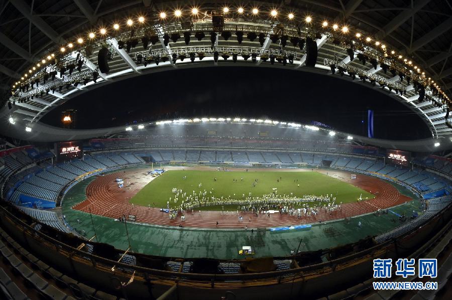 Volunteers enjoy themselves in the carnival on Aug. 25, 2014. (Xinhua/Qu Dongqu)