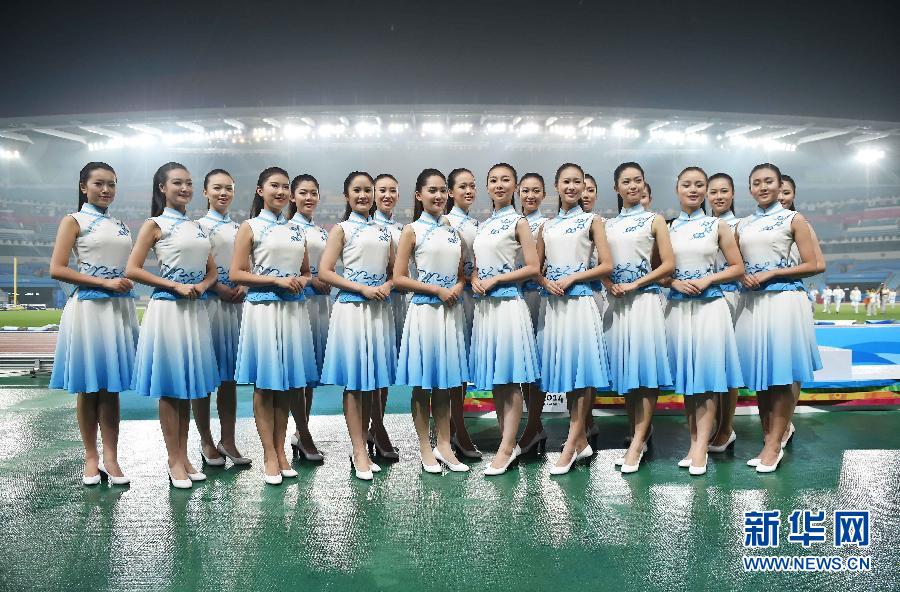 Members of ceremonial staff take group photos at the carnival on Aug. 25, 2014. (Xinhua/Chen Cheng)