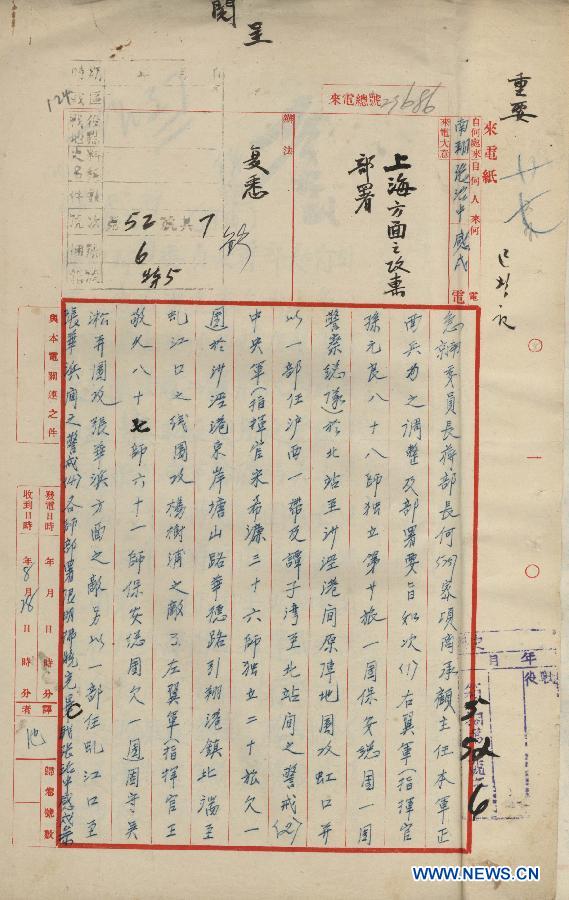 The second episode in a war documentary video series being released by China's State Archives Administration (SAA) has recalled the Battle of Songhu, one of the bloodiest battles during China's War of Resistance Against Japanese Aggression. (Xinhua)