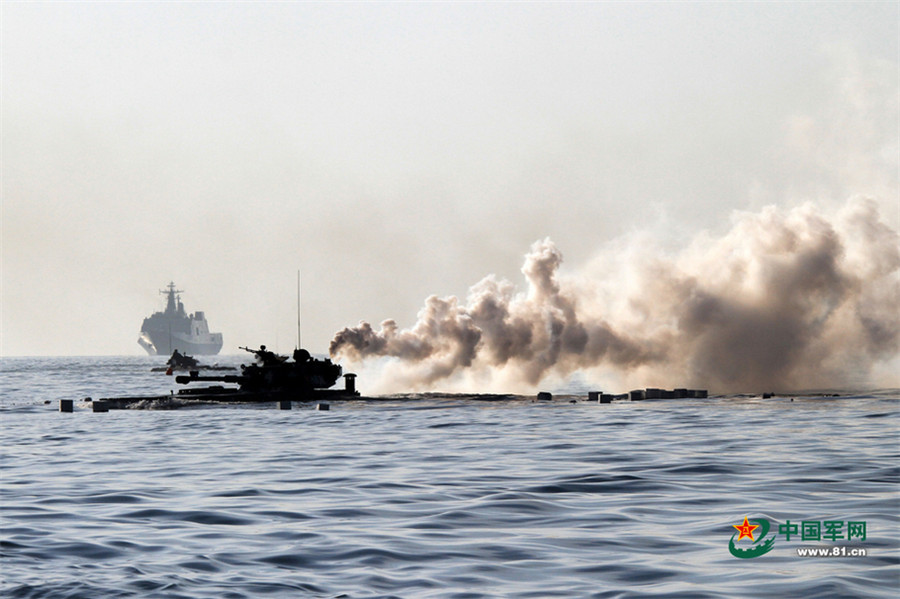 An amphibious armored vehicle is damaged. (China Military Online/Liao Zhiyong)