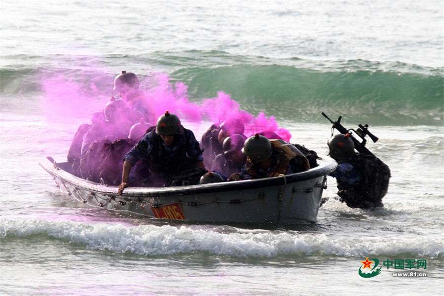 A steamboats just arrives at the beach. (China Military Online/Liao Zhiyong)