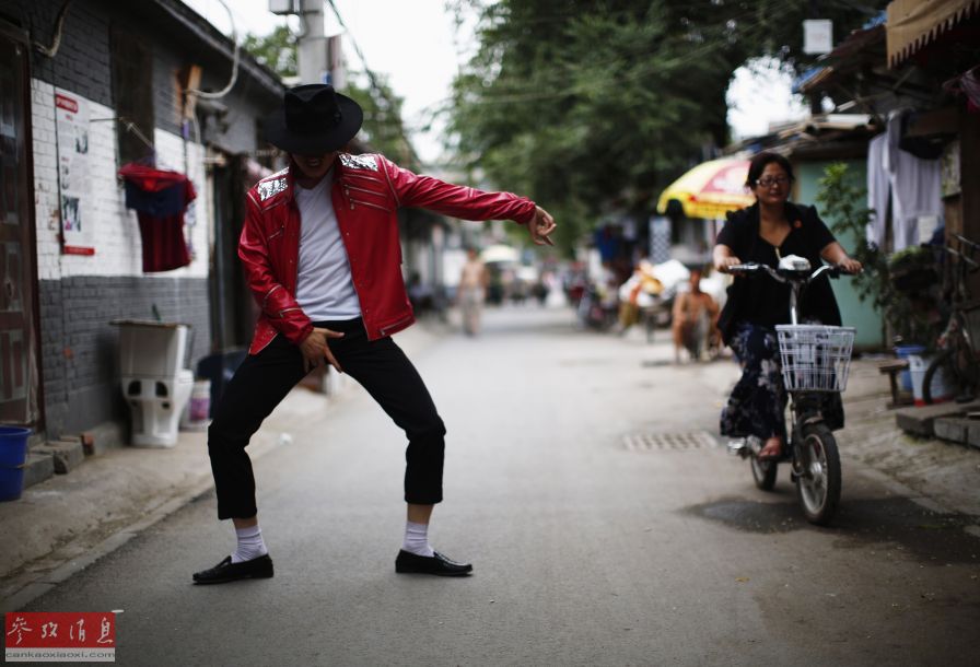 Zhang Guanhui, impersonating Michael Jackson, dances during his street performance in Beijing August 20, 2014. Zhang, born in 1984, quit elementary school and has since held jobs as a factory worker, waiter, and security guard. After watching a Michael Jackson music video four years ago for the first time, Zhang says he became fascinated and now puts on shows on the street and small stages impersonating the King of Pop. (Photo: cankaoxiaoxi.com)