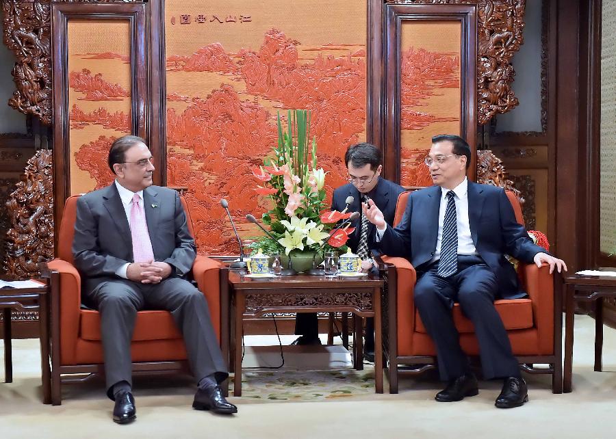 | Chinese Premier Li Keqiang (R) meets with Bilawal Bhutto Zardari, former Pakistani president and chairman of Pakistan People's Party, in Beijing, capital of China, Aug. 27, 2014. (Xinhua/Li Tao) |