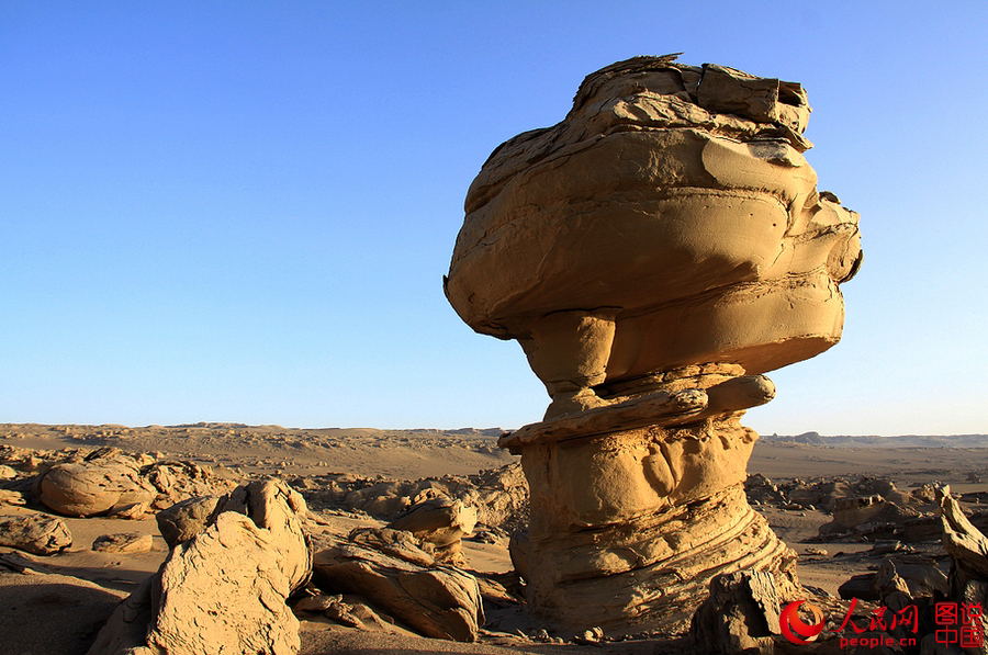 A yardang is a streamlined hill carved from bedrock or any consolidated or semi consolidated material by the dual action of wind abrasion, dust and sand, and deflation. Depending upon the winds and the composition of the weakly indurated deposits of silt and sand from which they are carved, yardangs may form very unusual shapes. (Photo/People's Daily Online)