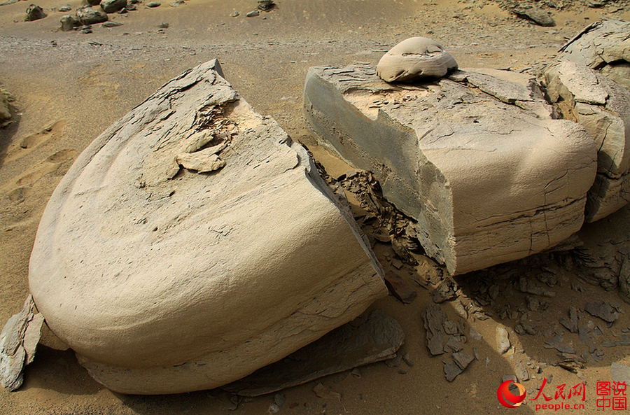 A yardang is a streamlined hill carved from bedrock or any consolidated or semi consolidated material by the dual action of wind abrasion, dust and sand, and deflation. Depending upon the winds and the composition of the weakly indurated deposits of silt and sand from which they are carved, yardangs may form very unusual shapes. (Photo/People's Daily Online)