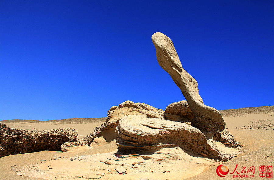 A yardang is a streamlined hill carved from bedrock or any consolidated or semi consolidated material by the dual action of wind abrasion, dust and sand, and deflation. Depending upon the winds and the composition of the weakly indurated deposits of silt and sand from which they are carved, yardangs may form very unusual shapes. (Photo/People's Daily Online)