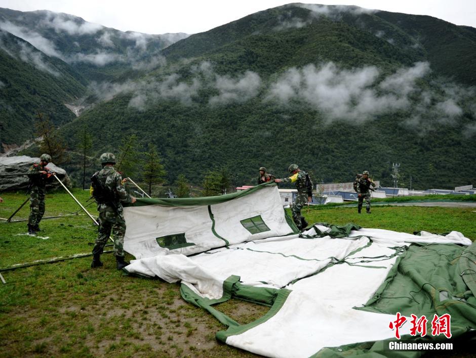 Armed police set up tents. (CNS/Liu Zhongjun)