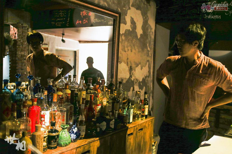 The bar runners put liquors, beers and foreign wines together in the bar. Sometimes Wong will do cocktail mixing with liquor and rum.(china.org.cn/ Zhang Hao)
