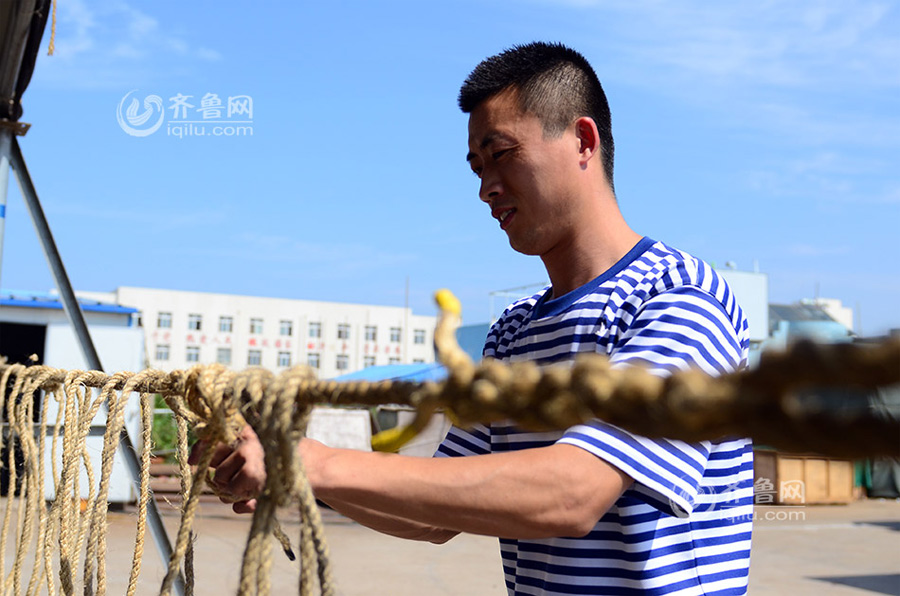 A diver practices the ways of tying knot. (iqilu.com/ Sun Zhiwen)