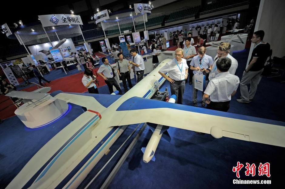 2014 International drones and model aircraft technology and equipment exhibition kicks off in north China's Tianjin on Aug. 29, 2014. More than 70 enterprises from home and abroad specializing in drone research and manufacture participate in the exhibition with advanced products including GPS, telecommunication products etc. This exhibition aims to establish an all-around communication platform and to promote integrated military and civilian development. (CNS/Tong Yu)