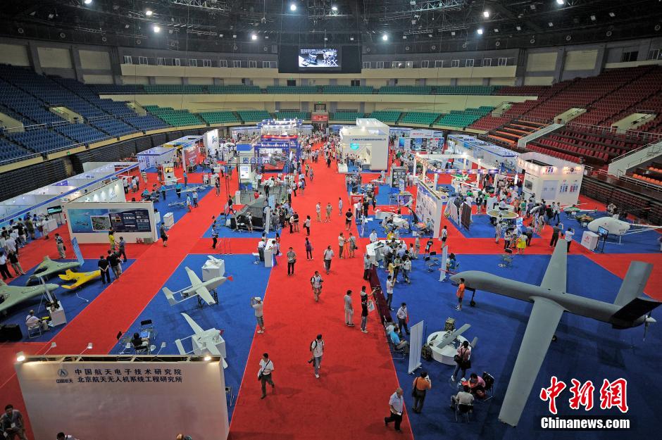 | 2014 International drones and model aircraft technology and equipment exhibition kicks off in north China's Tianjin on Aug. 29, 2014. More than 70 enterprises from home and abroad specializing in drone research and manufacture participate in the exhibition with advanced products including GPS, telecommunication products etc. This exhibition aims to establish an all-around communication platform and to promote integrated military and civilian development. (CNS/Tong Yu) |
