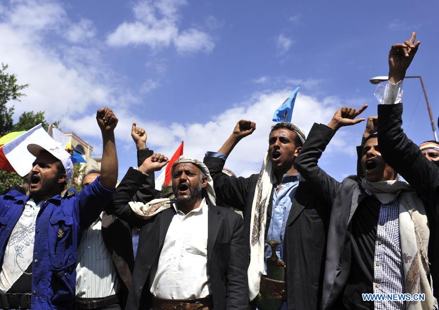 Yemeni people take part in demonstration in Sanaa