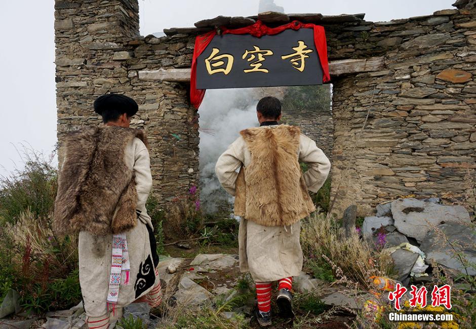 Qiang people offer sacrifices to their God "Baihaha" every year on August 8 of the lunar calendar at Baikong Temple in southwest China's Sichuan province. The temple is the only place in Qiang region where natural white rocks are worshipped. White rocks mean happiness, prosperity and gratitude in the eyes of Qiang. (CNS/Zhang Zixuan)