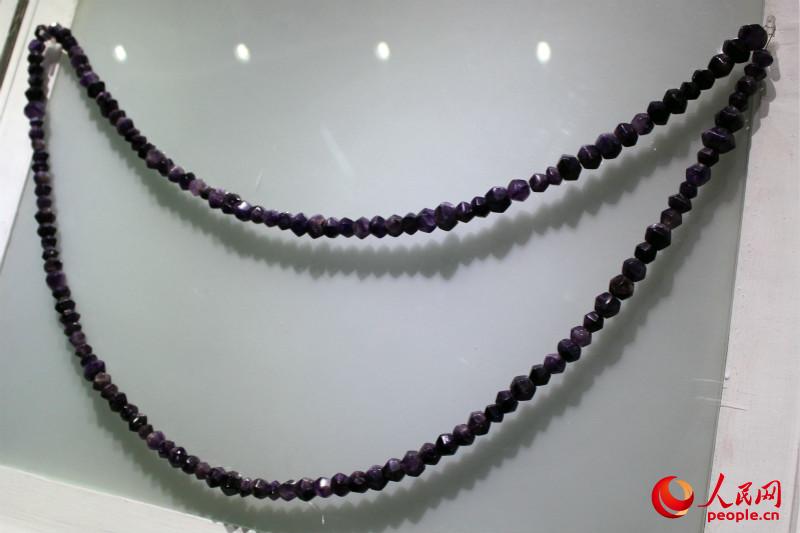 A string of amethyst beads was unearthed in 1990 in the number one tomb of Huangnigang.