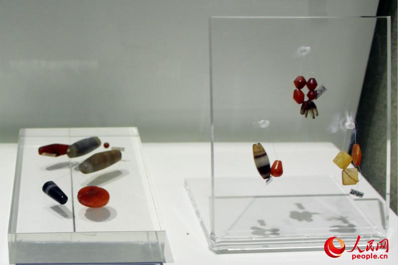 Agate accessories unearthed from Han graves in Hepu. (People's Daily Online/Chen Yuan)