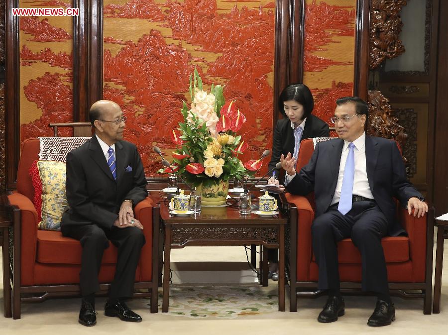 Chinese Premier Li Keqiang (R) meets with Malaysian Supreme Head of State Abdul Halim Mu'adzam Shah in Beijing, capital of China, Sept. 5, 2014. (Xinhua/Pang Xinglei)