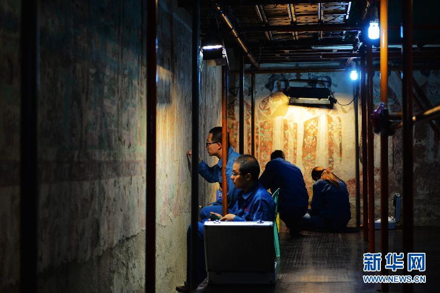 To protect the cultural relics in Mogao Grottoes in Dunhuang, preservationists and researchers have been "examining and healing" the frescoes and other relics since the establishment of Dunhuang Protection Agency in 1944. Till now, more than 5,000 square meters of fresco and 280 grottoes have been repaired.