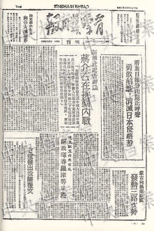 On August 15, 1945, Xinhua News Agency published a commentary titled Chiang Kai-shek Incites the Civil War. (Photo/China's State Archives Administration)