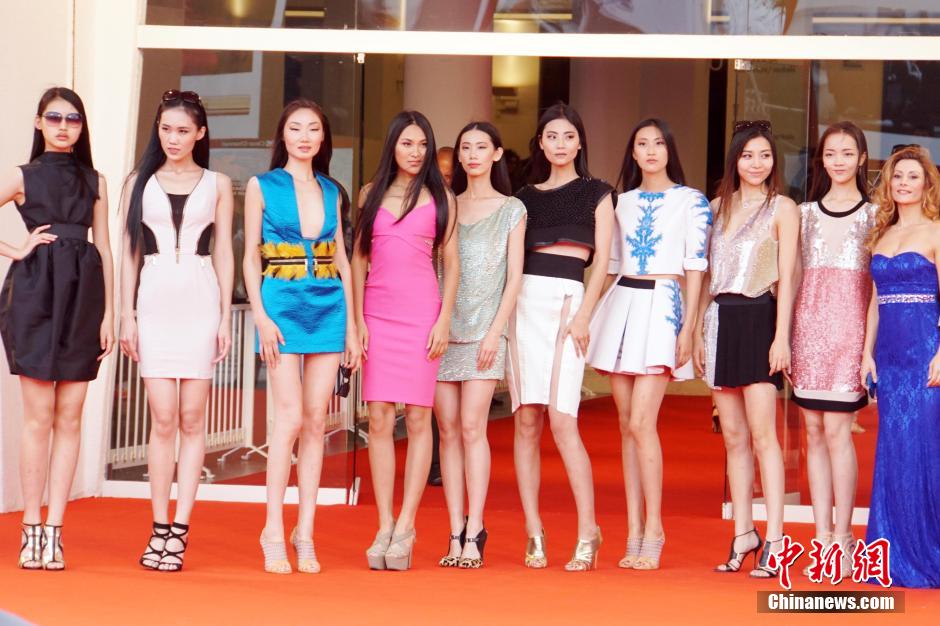 On the afternoon of Sept. 2, Chinese models taking part in a reality show hit the red carpet of the Venice International Film Festival in Venice, Italy. The show - Loren Models - is made by GuangxiTV. (CNS/Luo Wengang)