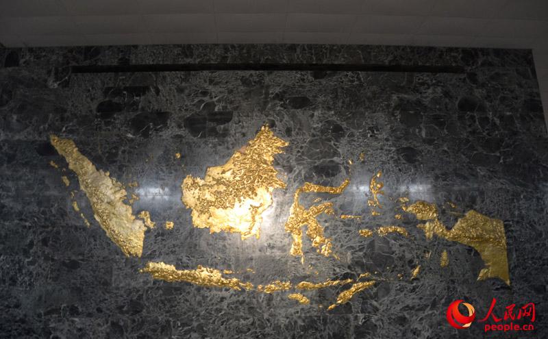 The relief of Indonesian map on the wall of the museum. (People's Daily Online/Du Mingming)