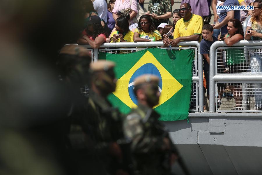 Residents watch a military parade to commemorate the Independence's Day of Brazil, at the Anhembi Sambadrome, in Sao Paulo, Brazil, on Sept. 7, 2014. Brazil celebrated the 192th anniversary of its independence on Sunday. (Xinhua/Rahel Patrasso)