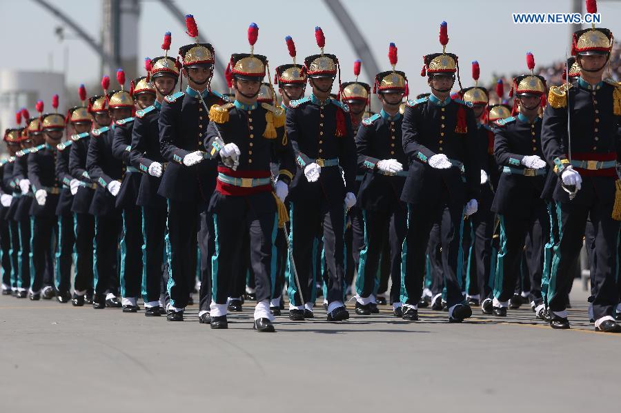 Soldiers take part in a military parade to commemorate the Independence's Day of Brazil, at the Anhembi Sambadrome, in Sao Paulo, Brazil, on Sept. 7, 2014. Brazil celebrated the 192th anniversary of its independence on Sunday. (Xinhua/Rahel Patrasso)
