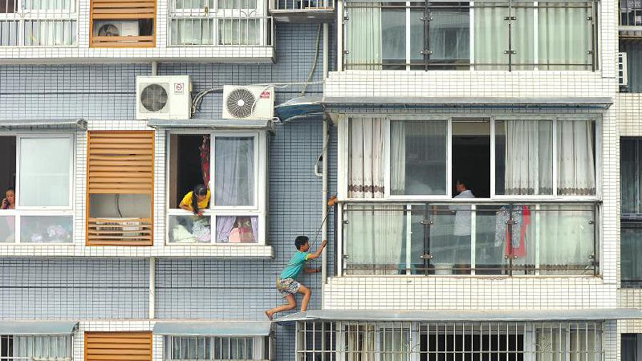 Kai climbs back toward safety. (Photo Source: wccdaily.com.cn)