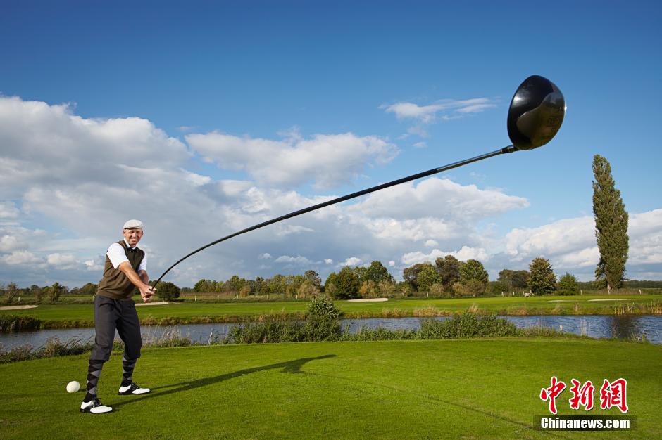 Danish professional golf athletes Karsten Maas secured his place in the Guinness World Records 2015 book for creating the world’s longest usable golf club. It measures 4.37m in length and has been used to drive a ball a distance of 165.46m. (Photo: Xinhuanet photo/Chinanews.com)