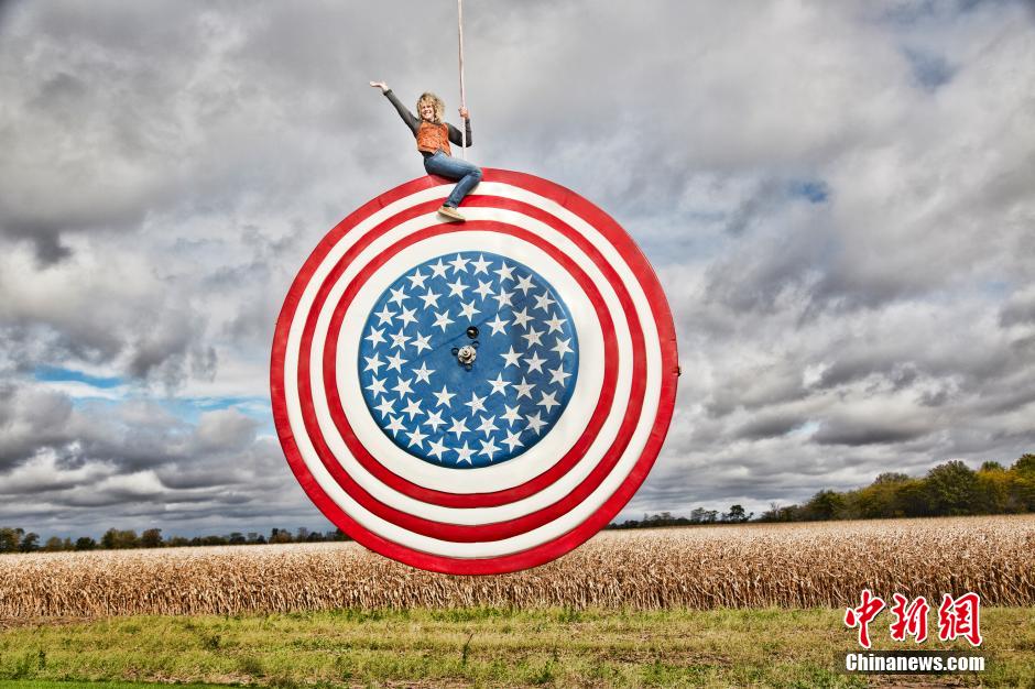 Beth Johnson has made it into the Guinness World Records 2015 book for constructing the world’s largest yo-yo which measures 3.65m in diameter with a weight of 2095.6kg. (Photo: Xinhuanet photo/Chinanews.com)