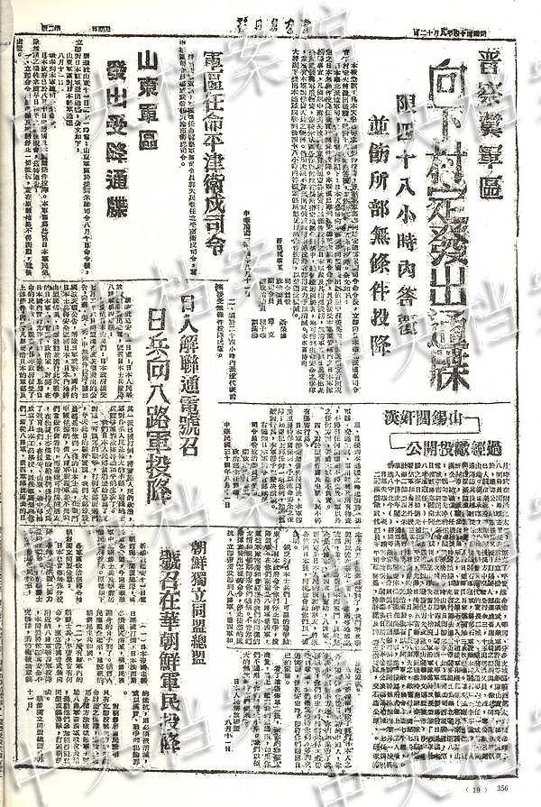 On August 11, 1945, Shanxi-Chaha’er-Hebei Military Area and Shandong Military Area issued an ultimatum for Japanese army to surrender. (Photo/China's State Archives Administration)