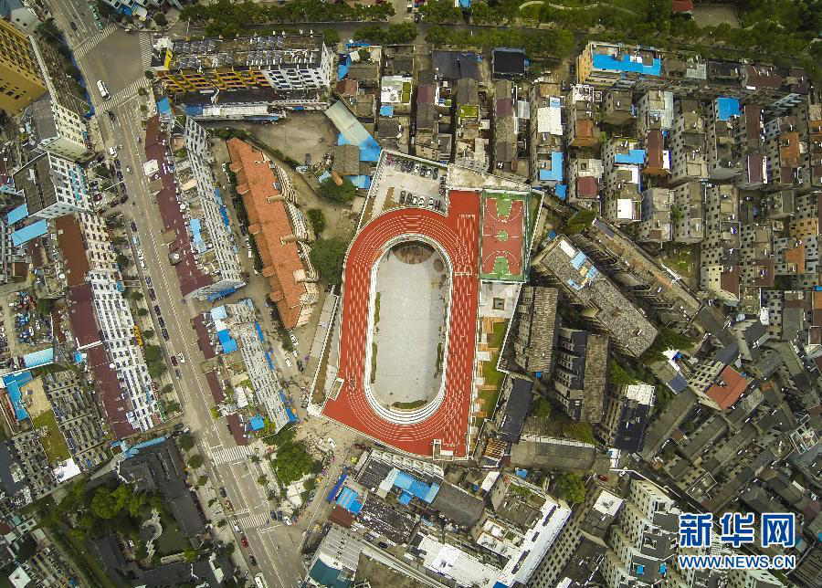 On September 3, students take PE class on the running track of the second primary school at Chicheng Street of Tiantai county, east China’s Zhejiang province.(Xinhua/Xu Yu)