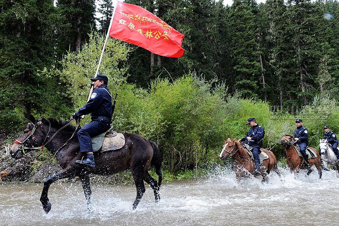 Policemen patrol up the primeval forest. (www.scol.com.cn)