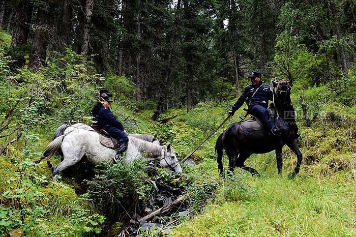 Policemen patrol up the primeval forest. (www.scol.com.cn)